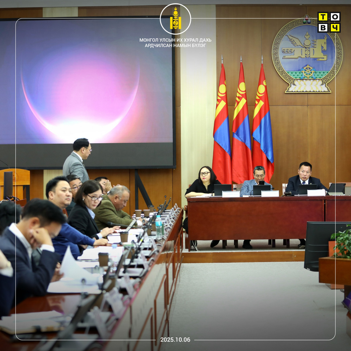 Мөн Монгол Улсын 2026 оны төсвийн тухай, Үндэсний баялгийн сангийн 2026 оны төсвийн тухай, Нийгмийн даатгалын сангийн 2026 оны төсвийн тухай, Эрүүл мэндийн даатгалын сангийн 2026 оны төсвийн тухай хуулийн төслүүдийг судлан, дүгнэлтийн төсөл боловсруулах үүрэг бүхий ажлын хэсгийн мэдээллийг УИХ-ын гишүүн ажлын хэсгийн ахлагч Б.Түвшин гишүүдэд танилцуулна.