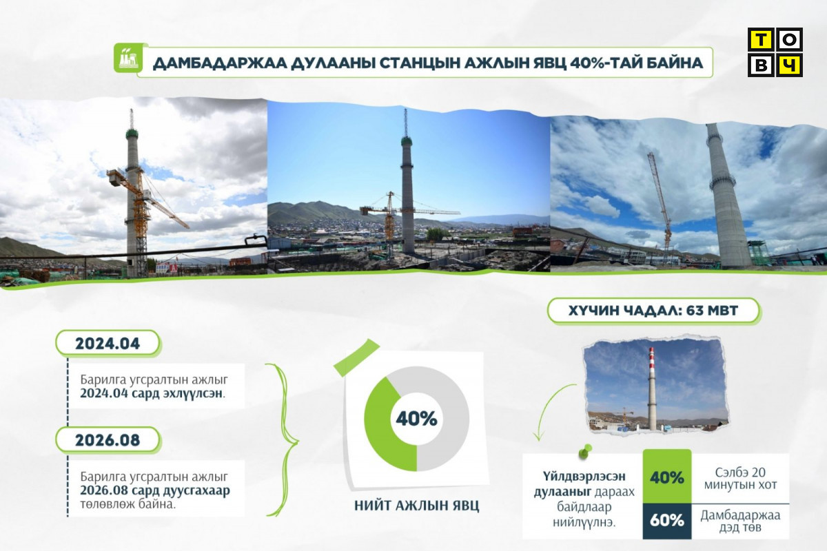Энэ үеэр хотын дарга Х.Нямбаатар “Улаанбаатар хотод 2026 онд хэд хэдэн эрчим хүч, дулааны станцыг барина. ТЭЦ-5, Хог шатааж 34 МВт эрчим хүч үйлдвэрлэх төсөл, Эмээлтийн 24 МВт дулааны цахилгаан станцын барилгын ажлыг тус тус эхлүүлнэ. Дэнжийн мянга буюу Ногоон нуур орчимд 93 МВт хийн дулааны станц, Хан Хиллс хотхоны баруун талд 110 МВт хийн дулааны станцыг ирэх жилээс барина. Дамбадаржаа дулааны станцын барилга угсралтын ажил 2024 оны дөрөвдүгээр сард эхэлсэн учраас 2026 онд хамгийн түрүүнд ашиглалтад орно. Дамбадаржаа станцаас дулаанаа хангах Дамбадаржаа дэд төвийг 2000 айлын орон сууцны хороолол байдлаар төлөвлөж, ирэх жилээс газрыг нөхөн олговортойгоор чөлөөлнө. Дамбадаржаа дэд төв нь Сэлбэ хоттой холбогдсон орон сууцны хороолол болно. Харин Сэлбэ хотын долоон багц ажлын хүрээнд нийслэлийн санхүүжилтээр 9000 айлын орон сууц, хувийн хэвшлийн санхүүжилтээр 4000 айлын орон сууц буюу нийт 13 мянга орчим айлын орон сууц, үйлчилгээний төвтэй цогцолбор хороолол барина, эхний ажлууд хийгдээд явж байна” гэдгийг онцоллоо.