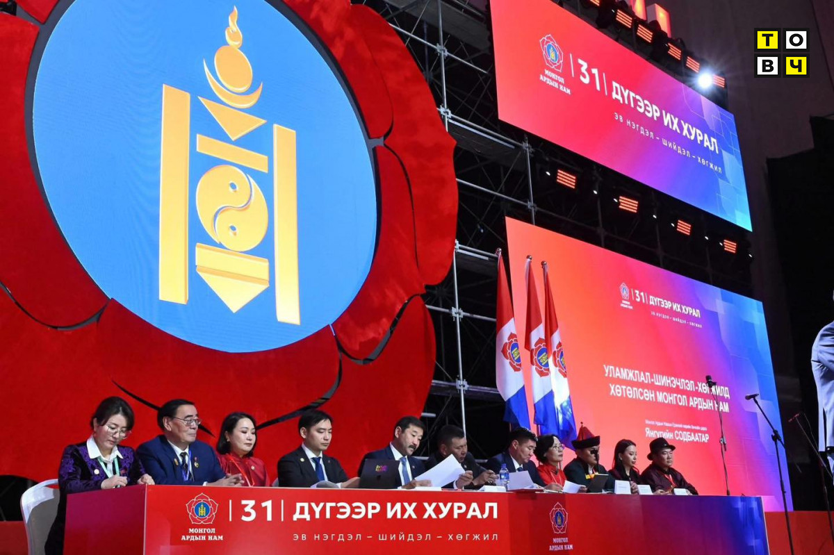 Монгол Ардын Намын Үндсэн дүрмийн 18 дугаар зүйлийн 18.2 дахь хэсгийг үндэслэн 31 дүгээр Их хурлын даргалагчаар Монгол Ардын Намын Удирдах зөвлөлийн гишүүн, УИХ дахь Монгол Ардын намын бүлгийн дарга Ж.Батжаргал, орлогч даргаар УИХ-ын дэд дарга Ж.Бат-Эрдэнэ, Монгол Ардын Намын Удирдах зөвлөлийн гишүүн, Монгол Улсын Засгийн газрын гишүүн, Засгийн газрын хэрэг эрхлэх газрын дарга С.Бямбацогт, тэргүүлэгчдээр УИХ-ын гишүүн О.Номинчимэг, УИХ-ын гишүүн Б.Хэрлэн, УИХ-ын гишүүн Г.Лувсанжамц, Баян-Өлгий аймгийн ИТХ-ын төлөөлөгч Б.Анаргуль, Хэнтий аймгийн Биндэр сумын МАН-ын хорооны дарга, Засаг дарга Ц.Дэмбэрэлсайхан, Сүхбаатар аймгийн Халзан сумын ИТХ-ын төлөөлөгч, Монгол Улсын гавьяат малчин Ж.Мөнхсүрэн, Социал демократ ахмадын холбооны тэргүүн Б.Гомбо, Нийслэлийн Социал Демократ Монголын Эмэгтэйчүүдийн холбооны дарга, Нийслэлийн ИТХ-ын төлөөлөгч Б.Ану-Үжин нарыг сонгож, баталлаа.