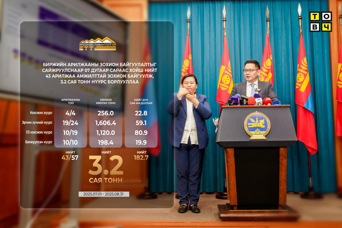 Оны эхний хагас жилд нийт 85 удаагийн нээлттэй цахим арилжаа зохион байгуулснаас 65 удаагийн арилжаа амжилтгүй болж, 20 удаагийн арилжаагаар 1.3 сая тонн нүүрс борлуулаад байсан. Сүүлийн хоёр сарын хугацаанд биржийн арилжааны зохион байгуулалтыг сайжруулснаар 7 дугаар сараас 09 дүгээр сарын 04-ний өдрийг дуустал хугацаанд уул уурхайн биржээр 43 удаагийн арилжаагаар 182.7 сая ам.долларын үнэлгээ бүхий 3.2 сая тонн нүүрсийг амжилттай арилжааллаа.