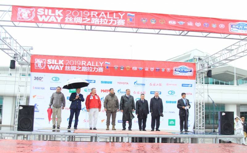 Энэ үеэр Монгол Улсын Ерөнхийлөгчийн Тамгын газрын дарга З.Энхболд “Та бүхэнд энэ өглөөний мэнд хүргэе. “Торгоны зам”-2019 уралдаанд оролцох Монголын тамирчдаа үдэн гаргах ёслолд хүрэлцэн ирсэн Та бүхэнд баярлалаа. ОХУ-Монгол-БНХАУ-ын нутгаар 5000 км уралдах уралдаанд Монгол Улсын баг, тамирчид анх удаагаа 15 хүний бүрэлдэхүүнтэй буюу олуулаа оролцох гэж байна. Нутагтаа болж байгаа уралдаанд амжилт гаргана гэдэгт итгэлтэй байна. Амжилт гаргахын ерөөл дэвшүүлье” гэлээ.