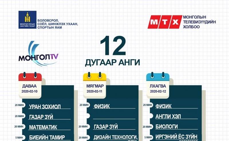Ирэх долоо хоногт буюу хоёрдугаар сарын 10-ны Даваа гаригаас хоёрдугаар сарын 14-ний Баасан гаригт гарах ЕБС-ийн сурагчдад зориулсан теле хичээлийн хуваарийг хүргэж байна.