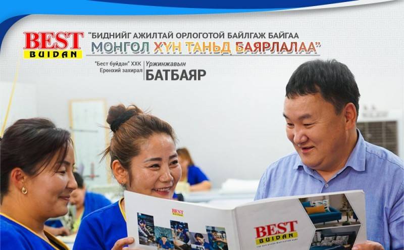 Өндөр технологи дээр суурилсан үндэсний үйлдвэрлэлийг хөгжүүлэх нь Монголын хөгжлийн гарц гэдгийг бид дор бүрнээ ярьж төсөл хөтөлбөрүүд хэрэгжүүлсээр ирсэн ч хөрсөн дээр буусан дорвитой ажил ховор. Харин “Бест буйдан” компанийг үүсгэн байгуулагч Ү.Батбаяр захирал мод, төмөр эвлүүлэн өөрийнхөө бодож санаачилсан загвараар буйдан хийхээр оролдож, анхны бүтээлээ ар нуруун дээрээ үүрэн явж зах дээр борлуулж хөдөлмөрийн амтыг мэдэрсэн нэгэн. Тэрээр бэрхшээлийг бэлэг болгон хүлээн авч хэвшсэн сэтгэлийн тэнхээгээр өнөөдрийнхөө амжилтыг өөрийн гараар тарьж чадсан юм. Тиймээс ч нийгмийн хариуцлагаа асар сайн ухамсарлаж хийж бүтээж буй бүхэндээ сэтгэл зүтгэлээ шингээдэг хөдөлмөрийн сахилга бат сайтай үнэнч хамт олныг хэдийнэ бүрдүүлж амжжээ. “Үргэлж шилдэг нь байцгаая” хэмээх уриатай “Бэст буйдан” компаний хамт олон өөрийн цахим хуудсаар дамжуулж “Биднийг ажилтай орлоготой байлгаж байгаа Монгол хүн таньд баярлалаа” хэмээн хэрэглэгчиддээ талархал илэрхийлсэн нь тэдний бизнесийн эерэг хандлагыг олон нийтэд тунхагласан содон мэндчилгээ байсан юм. Худалдан авагчиддаа талархаж хэрэглэгчдийнхээ үнэ цэнийг ухамсарлаж чаддаг байх нь компаний бизнесийн хариуцлага мөнөөс мөн…