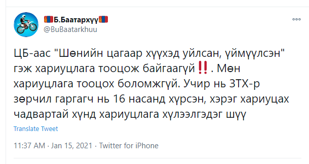 Цахим орчинд 22 цагаас хойш хүүхэд үймүүлбэл 100 мянган төгрөгөөр торгоно гэх мэдээлэл цацагдсан.  Тэгвэл уг асуудлын талаар ЦЕГ-ын Хэвлэл мэдээлэл, олон нийттэй харилцах албаны дарга Б.Баатархүү "Цагдаагийн байгууллагаас  "Шөнийн цагаар хүүхэд уйлсан, үймүүлсэн" гэж хариуцлага тооцож байгаагүй.  Мөн хариуцлага тооцох боломжгүй. Учир нь ЗТХ-р зөрчил гаргагч нь 16 насанд хүрсэн, хэрэг хариуцах чадвартай хүнд хариуцлага хүлээлгэдэг шүү"  гэх тайлбарыг цахим хуудсаараа дамжуулан хийжээ.