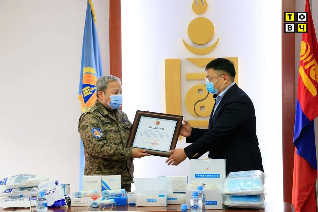 ОБЕГ-ын дарга, бригадын генерал Г.Ариунбуян “Монгол Улсын Засгийн газар, Улсын онцгой комиссоос авч хэрэгжүүлж байгаа ажлыг дэмжин, коронавируст халдвартай нүүр тулан тархалтын эсрэг бэлэн байдлын зэрэгт шилжин ажиллаж байгаа энэ нөхцөлд хандив өргөсөнд талархал илэрхийлж, ажлын амжилт хүсье” гэв.