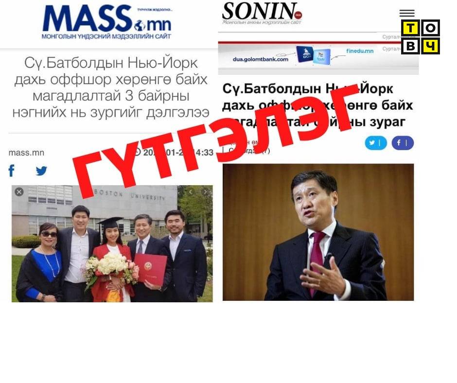 Түүнээс гадна УИХ-ын гишүүн С.Батболдын хөрөнгийг царцаасан тухай худал мэдээллийг санаатайгаар тараах болсон. Жишээ нь "С.Батболд нарын өмчийг хөдөлгөлгүй царцааж, хөрөнгүүдийг болон хууль бусаар олж авсан эсэхийг тогтоох хүсэлт гаргасан бөгөөд энэхүү хүсэлт нь Монголын шүүхэд гаргасан нэхэмжлэлийг шийдвэрлэхэд шаардлагатай дагалдах процесс юм байна." гэж бичжээ. Гэтэл Нью Йоркийн шүүхээс С.Батболдод хамааралгүй өөр хүний энэ өмчийг царцаахгүй гэсэн шийдвэр гаргажээ.