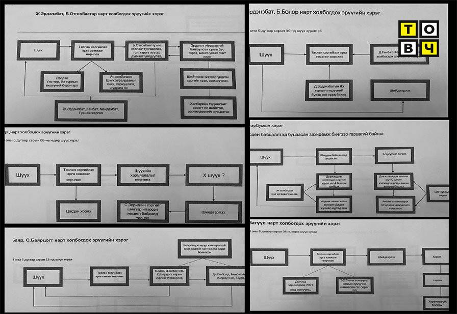 “Шүүх хурал 2020 оны зургадугаар сарын 15, шүүх нь таслан сэргийлэх арга хэмжээг өөрчилж, дараа нь С.Баяр, Ч.Давааням, С.Баярцогт нарын хэргийг тусгаарлах, Да.Ганболд, Б.Бямбасайхан, Ж.Ариунсан, хоорондоо шууд хамааралгүй гэмт хэргийг нэгтгэж нэг хэрэг болгосон гэх” гэжээ.