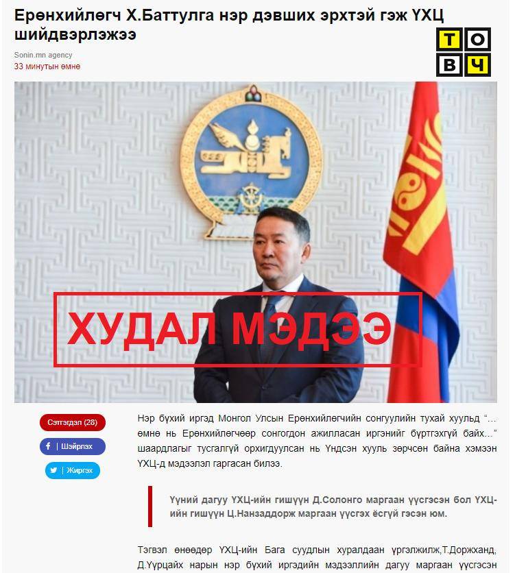 Ерөнхийлөгч Х.Баттулга дахин нэр дэвших нь Үндсэн хуулийн 30.2 буюу “.... 6 жилийн хугацаатай зөвхөн нэг удаа сонгоно” гэсэн заалтыг зөрчих эсэх асуудлыг Үндсэн хуулийн Цэц өнөө маргаашгүй хуралдаж шийднэ гэсэн мэдээлэл бий. Гэтэл дахин нэр дэвшихийн төлөө Цэцийн гишүүд дээр өөрөө гүйж очиж намба алдаж байсан эрхэм Ерөнхийлөгч маань улаан цагаандаа гарч зарим хэвлэлээр худал мэдээлэл тарааж эхэлжээ.