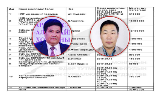 Энэ үйл явдалтай зэрэгцээд Цэцийн гишүүн Ц.Нанзаддорж шүүхийн хонгилын менежер гэх Б.Баасанцогтод Зам тээврийн сайд асан Д.Ганбатын өгсөн 5 тэрбум төгрөгийн онц их хэмжээний хахуулийг зуучлан дамжуулсан баримтыг Өдөр тутмын сонинуудын эрэн сурвалжлах нэгдэл дэлгэлээ.