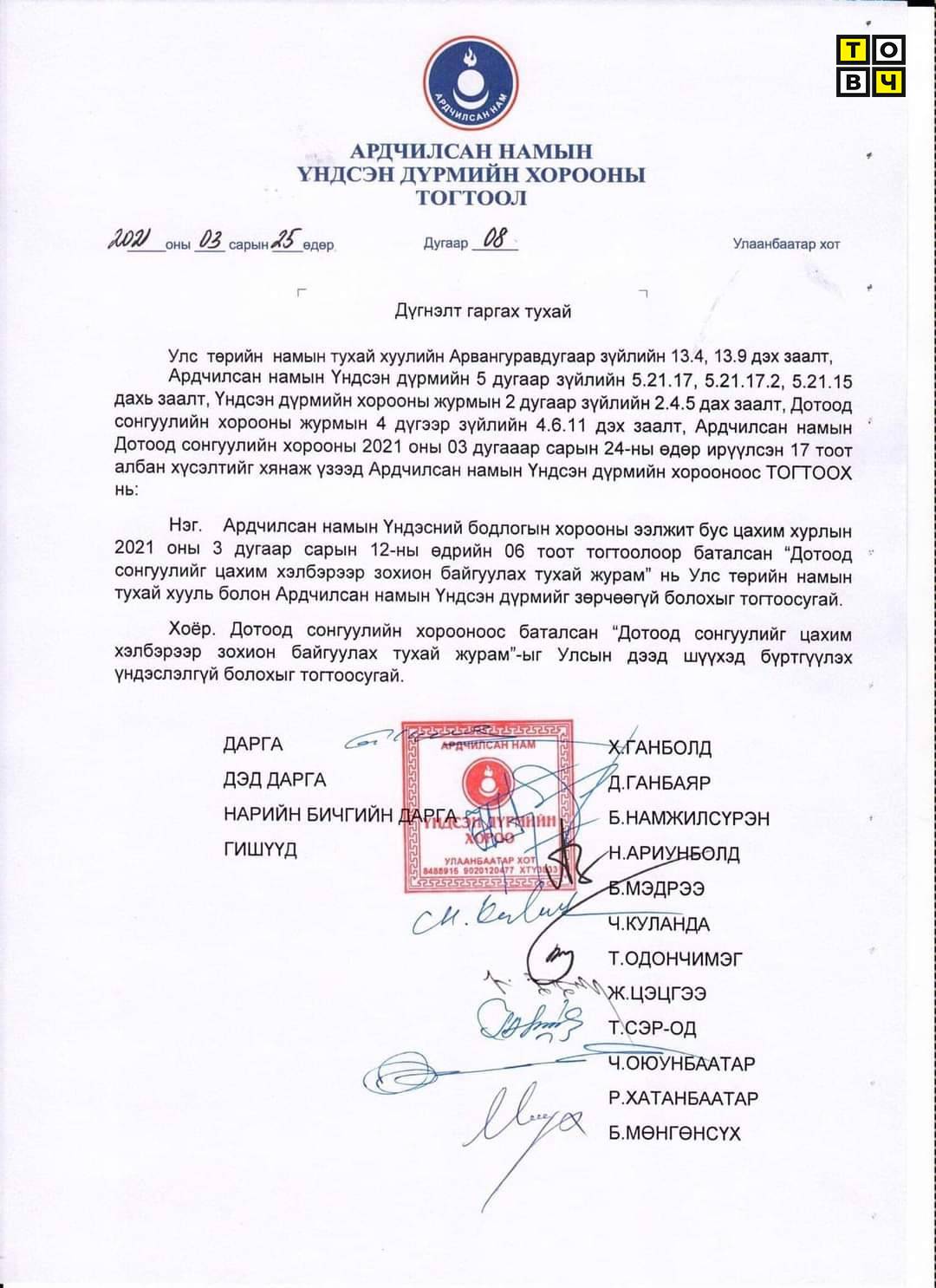 Ардчилсан намын Үндсэн дүрмийн хороо дүгнэлт гаргажээ. Дүгнэлтээр АН-ын цахим сонгууль Улстөрийн намын тухай хууль болон намын Үндсэн дүрмийг зөрчөөгүй болохыг тогтоосон байна.