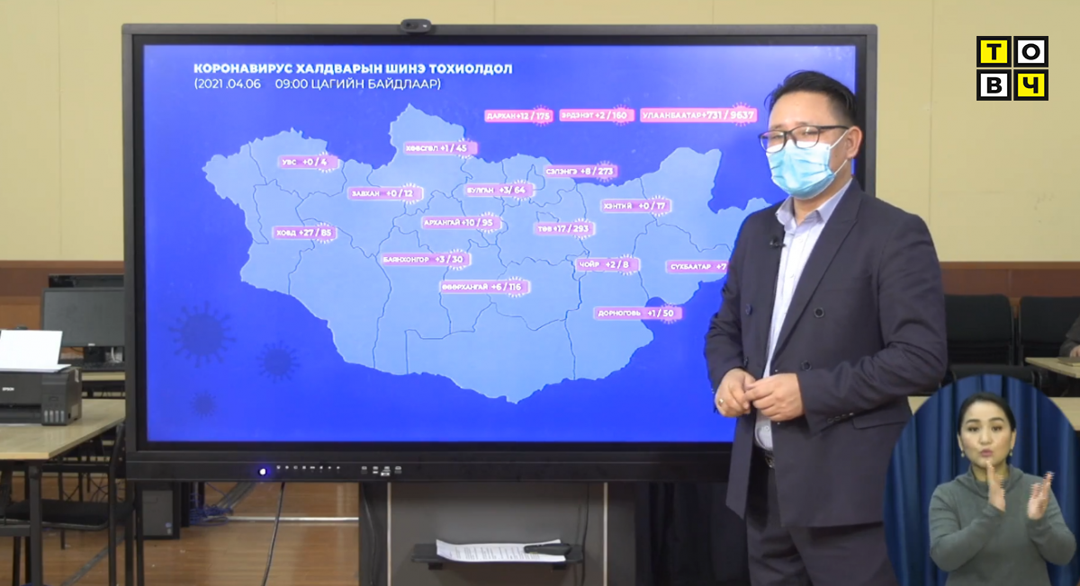 ЭМЯ-наас коронавирусний талаарх ээлжит мэдээллээ хийж байна. 2021 оны 4 дүгээр сарын 6-ны өдрийн 9 цагийн байдлаар сүүлийн 24 цагийн хугацаанд
