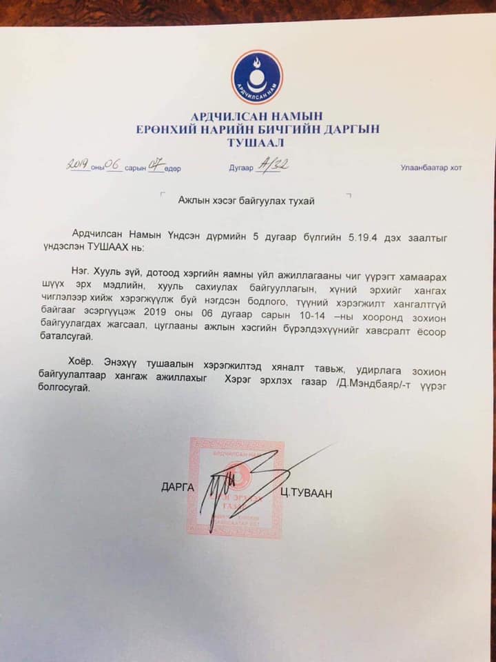 УИХ-ын чуулганы нэгдсэн хуралдааны үеэр УИХ-ын гишүүн Ц.Мөнх-Оргил УИХ-ын гишүүн Ц.Тувааны талаар нэгэн ноцтой мэдэгдэл хийсэн билээ.