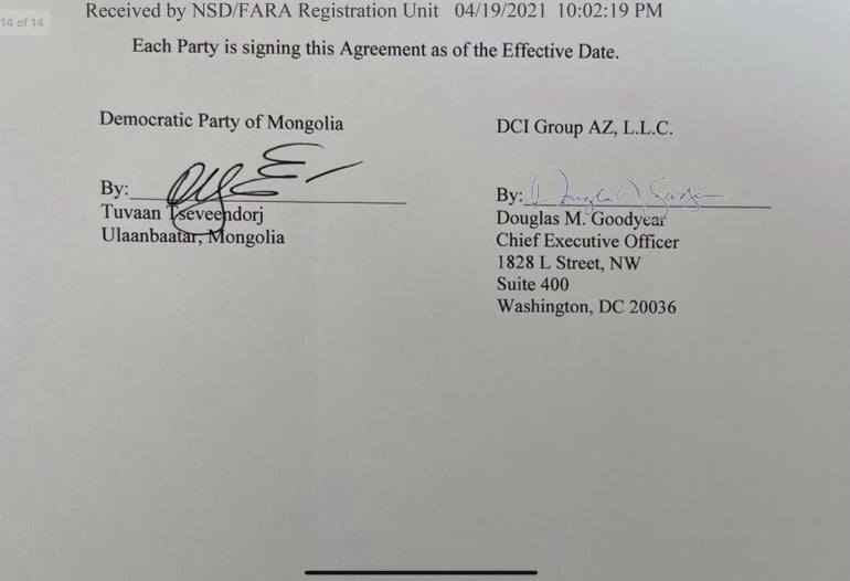 Тэгвэл түүний хийсэн гэх гэрээ эхнээсээ болжээ. Энэ талаар УИХ-ын гишүүн асан Ц.Оюунгэрэл "Ц.Туваан гишүүн юу хийчихээ вээ. Америкт лобби фирмүүд нь Конгресстээ бүртгэлтэй бдаг, бүх гэрээгээ ил тавьдаг, ялангуяа гадаадын сонгуультай холбоотой лоббиг ба бэгүй тайлагнах ёстой гэдгийг мэдэхгүй гэрээ хийсэн бололтой. $50К-р хөлслөнө, хэвлэлд $100К төлнө гэж гэрээлж. Ардчилсан Намын гэх гэрээн дээр 2021 оны 4 сарын 19-нд (!!!) Туваан гишүүн гарын үсэг зураад байгааг сайн ойлгосонгүй.... энэ юу л болоод байгаа юм бол оо! Гадаадад сонгуульд орох гэж байгаа юм уу" хэмээн гэрээний хэсгүүдийг нийтэлжээ.