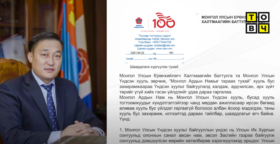 Танилц: Ерөнхийлөгч Х.Баттулгад хүргүүсэн МАН-ын шаардлага