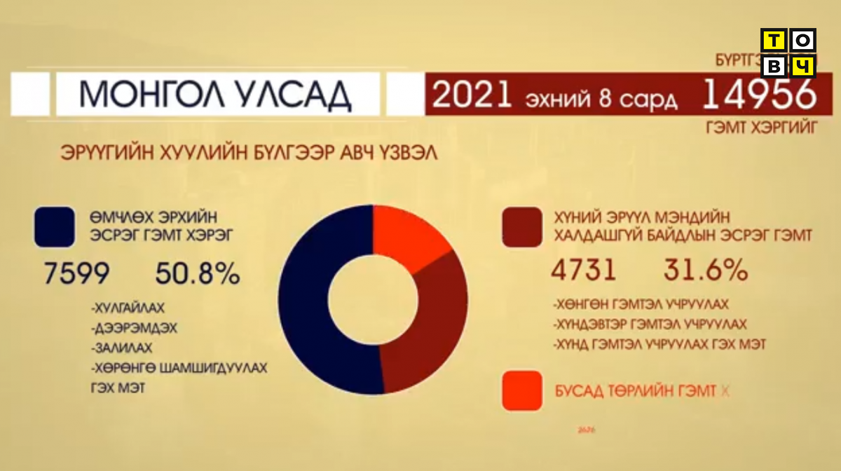 • Өмчлөх эрхийн эсрэг гэмт хэрэг 7599 буюу 50.8%-ийг