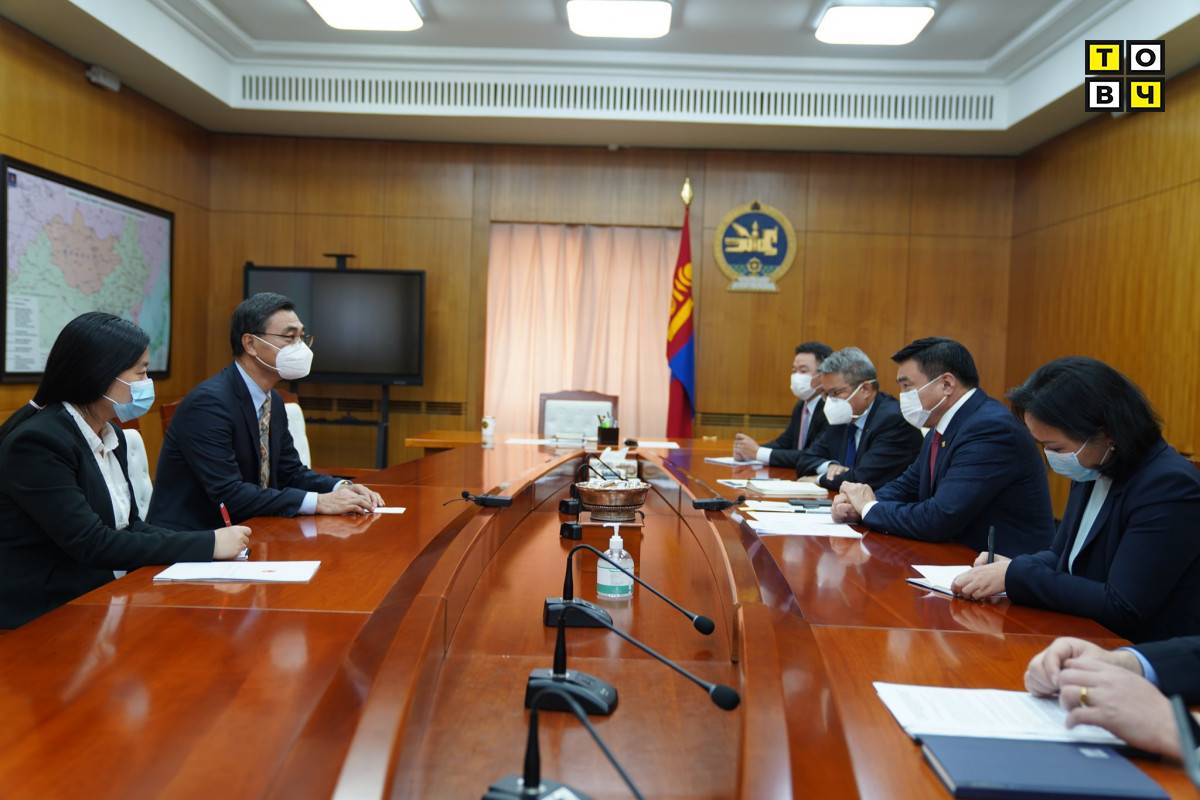 Шадар сайд өчигдөр /2021.09.21/ Сангийн сайд Б.Жавхлан, Уул уурхай, хүнд үйлдвэрийн сайд Г.Ёндон нарыг байлцуулан БНХАУ-ын Элчин сайд Цай Вэньруйтай шатахуун тээврийн асуудлаар санал солилцлоо.