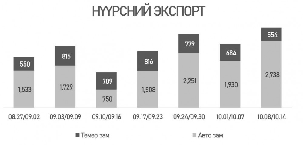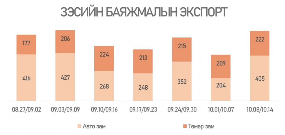 Энэ нь өнгөрсөн 8,9 дүгээр сарын гурван 7 хоногийн үзүүлэлттэй (2021.08.27-09.16) харьцуулахад 60 орчим хувиар өссөн үзүүлэлт аж.