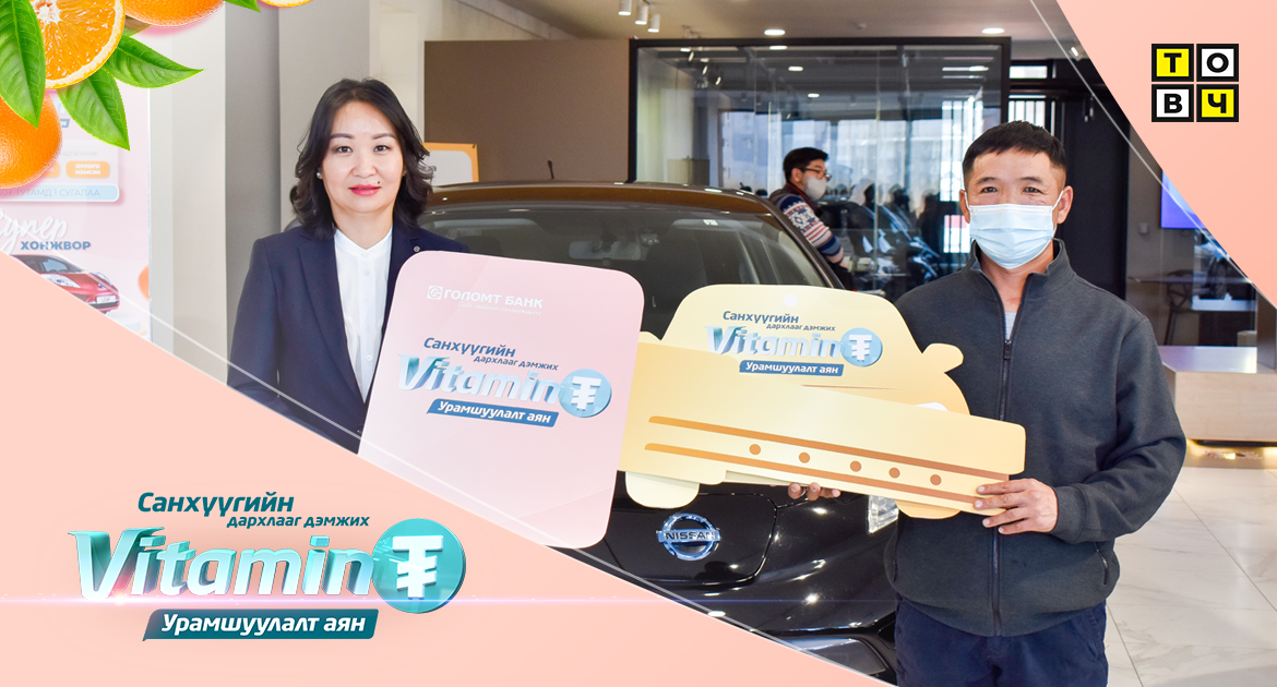 Бид амьдралын зөв хэв маягийг хэвшил болгож, шаардлагатай витаминуудыг хэрэглэснээр эрүүл, эрч хүчтэй байж чаддагийн адилаар хуримтлалыг зуршил болгох нь санхүүгийн дархлааг дэмжиж, ямар ч сорилттой цаг үеийг ажралгүй давах санхүүгийн витамин болж өгдөг билээ. Тэгвэл Голомт банк иргэдийг хуримтлалтай болгох зорилготой “Витамин ₮” урамшуулалт аяныг 2 дахь жилдээ хэрэгжүүлж эхлээд байна. Энэ удаад Голомт банкны зүгээс нийт 102 азтай харилцагчийг тодруулахаар төлөвлөсөн юм.