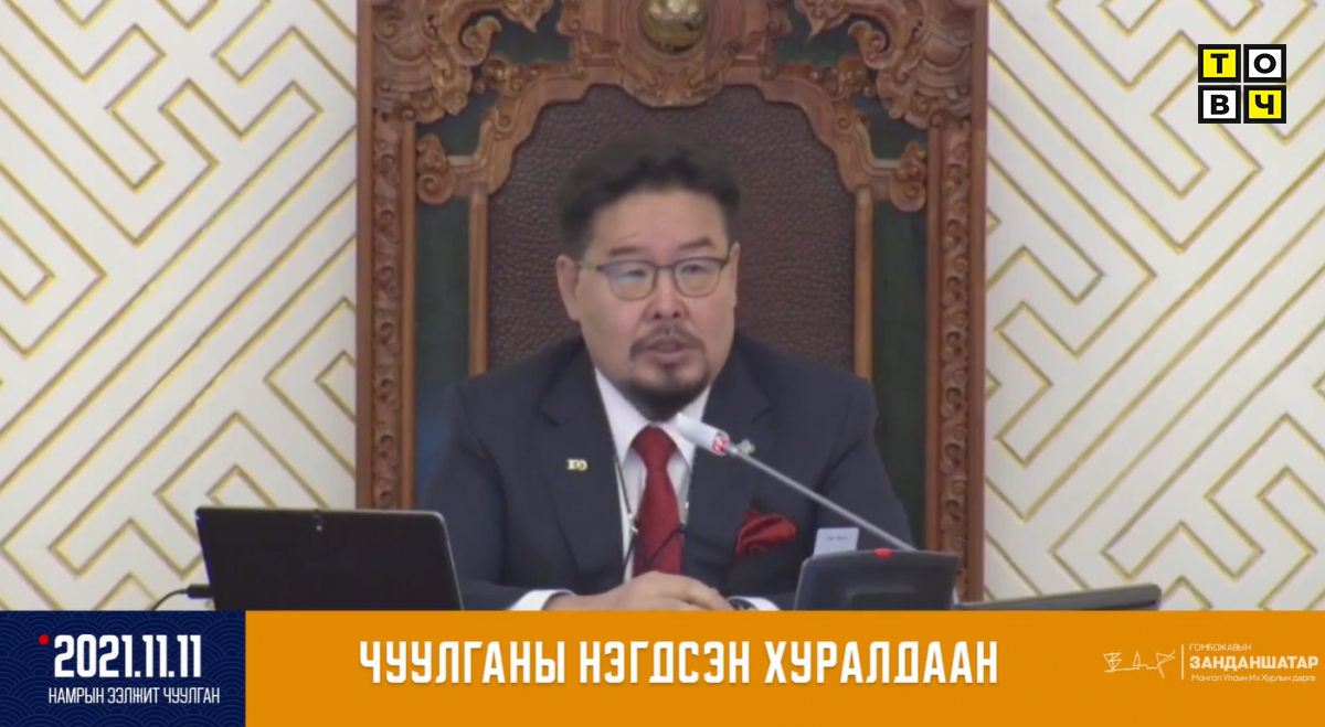 - “Тогтоол хүчингүй болсонд тооцох тухай” Улсын Их Хурлын тогтоолын төсөл /Засгийн газар 2021.10.06-ны өдөр өргөн мэдүүлсэн, эцсийн хэлэлцүүлэг/