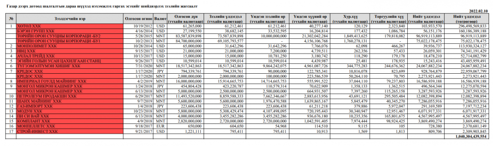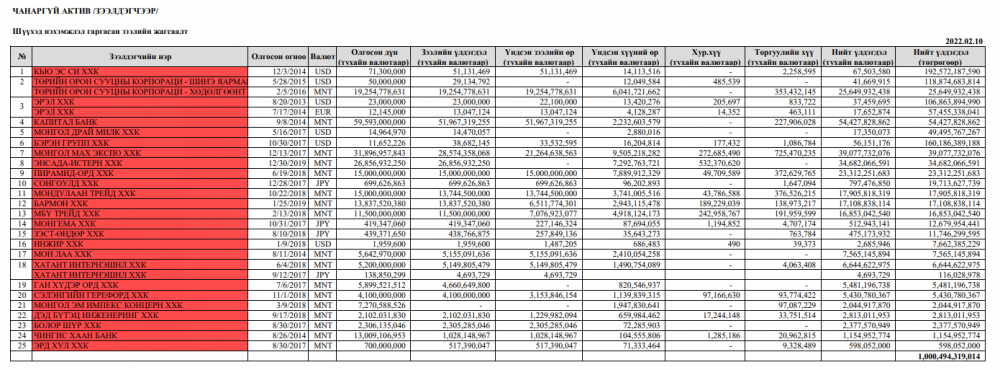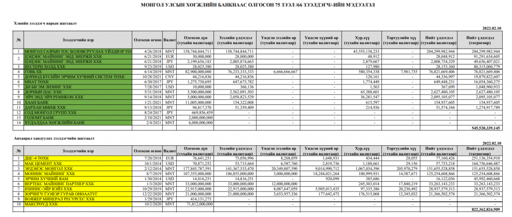 Зээлийн багцын мэдээллийг 2022 оны хоёрдугаар сарын 11-ний өдрийн байдлаар шинэчлэн мэдээлж байна.