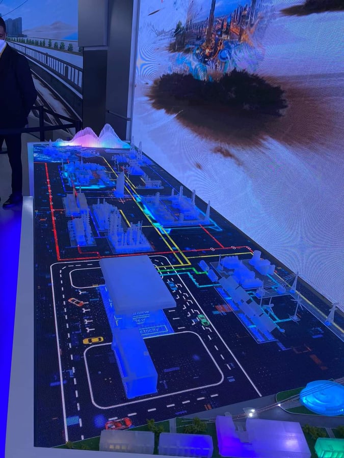 Гол нь павильоны цаад санаа нь “хөгжлөөсөө хуваалцаад хурдан галт тэргээр хамтдаа аялах мэт дэвшил өөд тэмүүлнэ” хэмээн танилцуулдаг айлын талын бодлого үзмэрүүдээс нь харагдах мэт. Гэрэл, лазерын шоунд умбасан үзмэрүүд нь бүхэлдээ технологийн хөгжил гэдэг нь эрсдэлээсээ илүү боломжуудыг хүн төрөлхтөнд авч ирж буй хэмээх итгэлийг төрүүлэв.