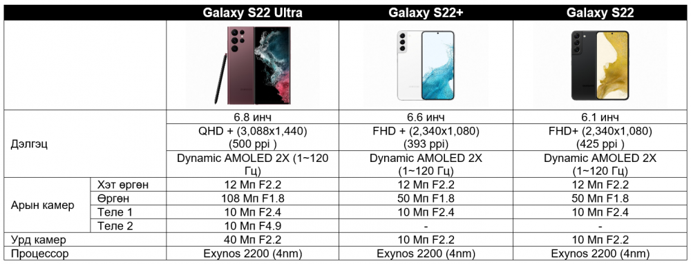 Galaxy S22 | S22+ | S22 Ultra алийг нь сонгох вэ?