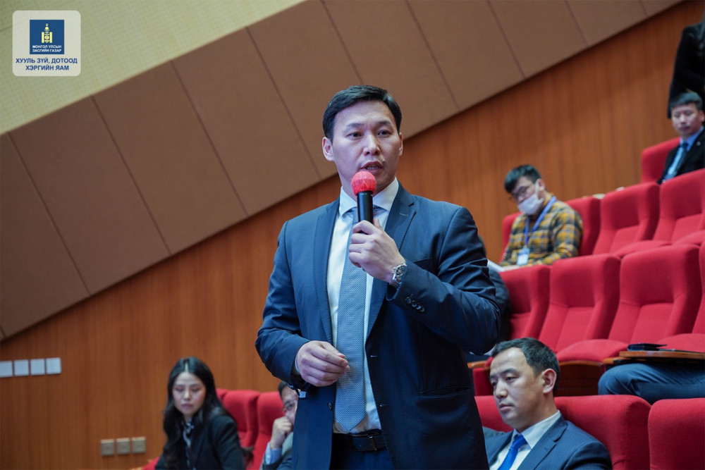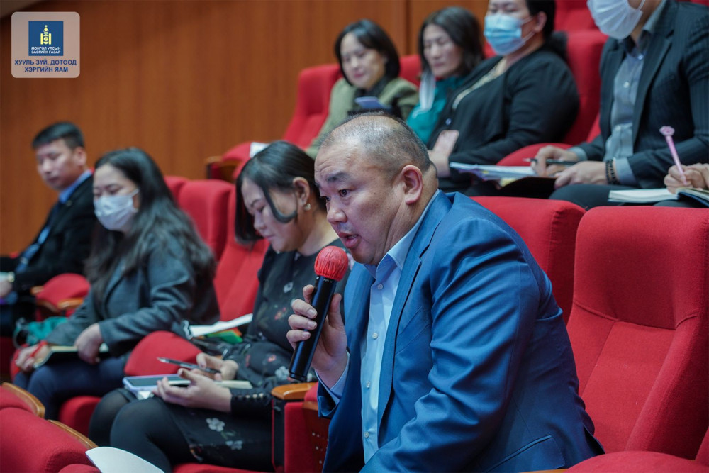 Уулзалтын үеэр Хууль зүйн байнгын хорооны болон чуулганы нэгдсэн хуралдааны хэлэлцүүлэгт бэлтгэх, санал дүгнэлт боловсруулах үүрэг бүхий ажлын хэсгийн ахлагч УИХ-ын гишүүн Ц.Мөнх-Оргил Согтууруулах ундааны эргэлтэд хяналт тавих, архидан согтуурахтай тэмцэх тухай хуулийн төслийн гол үзэл баримтлал, зарчмын өөрчлөлтийн талаар танилцуулж, аж ахуй нэгж байгууллагын төлөөлөл энэ талаар саналаа хэллээ.