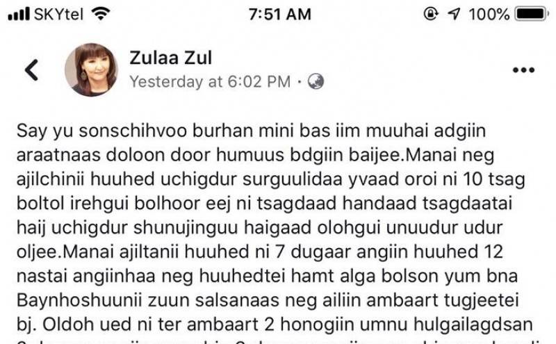 Өчигдөр орон нийтийн сүлжээнд Zulaa Zul гэх хаягтай иргэн хулгайлагдсан таван хүүхэд мансуурсан байдалтай олдсон. Одоо эмнэлэгт шокийн байдалтай байгаа талаар мэдээлсэн билээ. Тус мэдээллийн талаар өнөөдөр Цагдаагийн Ерөнхий газраас мэдээлэл хийж, худлаа мэдээлэл болохыг мэдэгдлээ.