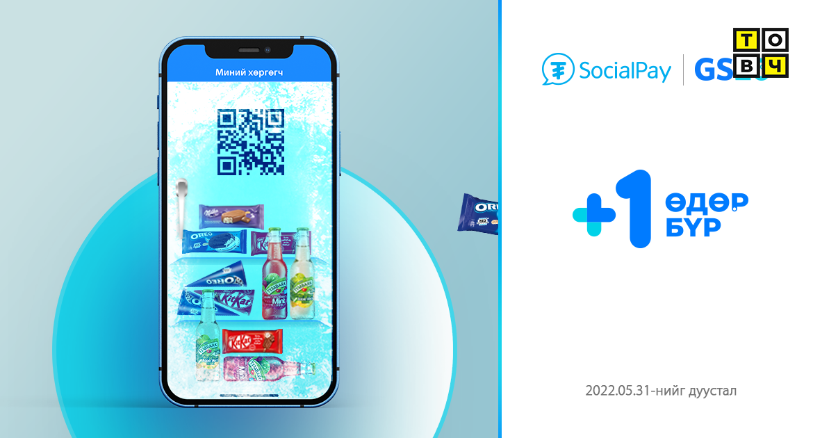 Энэ бол SocialPay аппликэйшний байнгын хамтрагч GS Mongolia-ийн 1 жилийн ойг тохиолдуулан бидний хамтран хэрэгжүүлж буй “SocialPay +1 GS25” урамшуулалт аян юм. Энэхүү аян нь 2022.05.18-05.31-ний хооронд үргэлжлэх ба энэ хугацаанд SocialPay ашиглан GS25 Mongolia-ийн бүх салбараас 8000₮-өөс дээш дүнтэй худалдан авалт хийсэн хэрэглэгч бүрийн “Миний хөргөгч”-нд сэрүүхэн бэлэгнүүд орох болно.