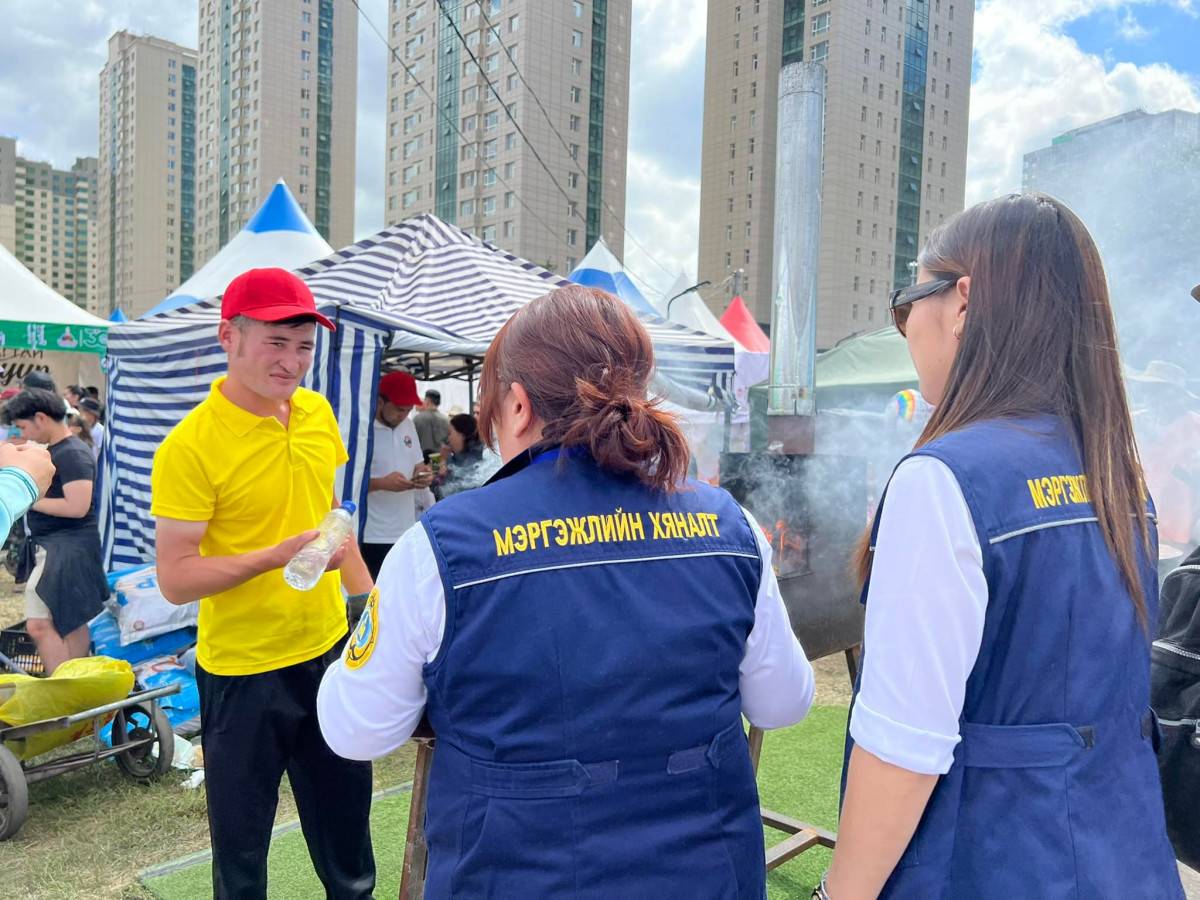 НМХГ-ын 243 улсын (ахлах) байцаагч, албан хаагчид Төв цэнгэлдэх хүрээлэн, Хүй долоон худаг, Үндэсний цэцэрлэгт хүрээлэн, Үндэсний соёл амралтын хүрээлэн, Сүхбаатарын талбай, Төрийн өндөрлөгүүдийн хүлээн авалт, Багануур, Налайх дүүргийн наадамд худалдаа, үйлчилгээ эрхэлж буй 741 аж ахуйн нэгж иргэний үйл ажиллагаанд урьдчилан сэргийлэх хяналт шалгалт хийж, хүнсний аюулгүй байдал, эрүүл ахуйн шаардлага, хөдөлмөрийн аюулгүй байдал, газын аюулгүй ажиллагааг хангаж ажиллах талаар сэрэмжлүүлэг, зөвлөмж, зөвлөгөө өгч, болзошгүй эрсдэлээс урьдчилан сэргийлж, ажиллаж байна.