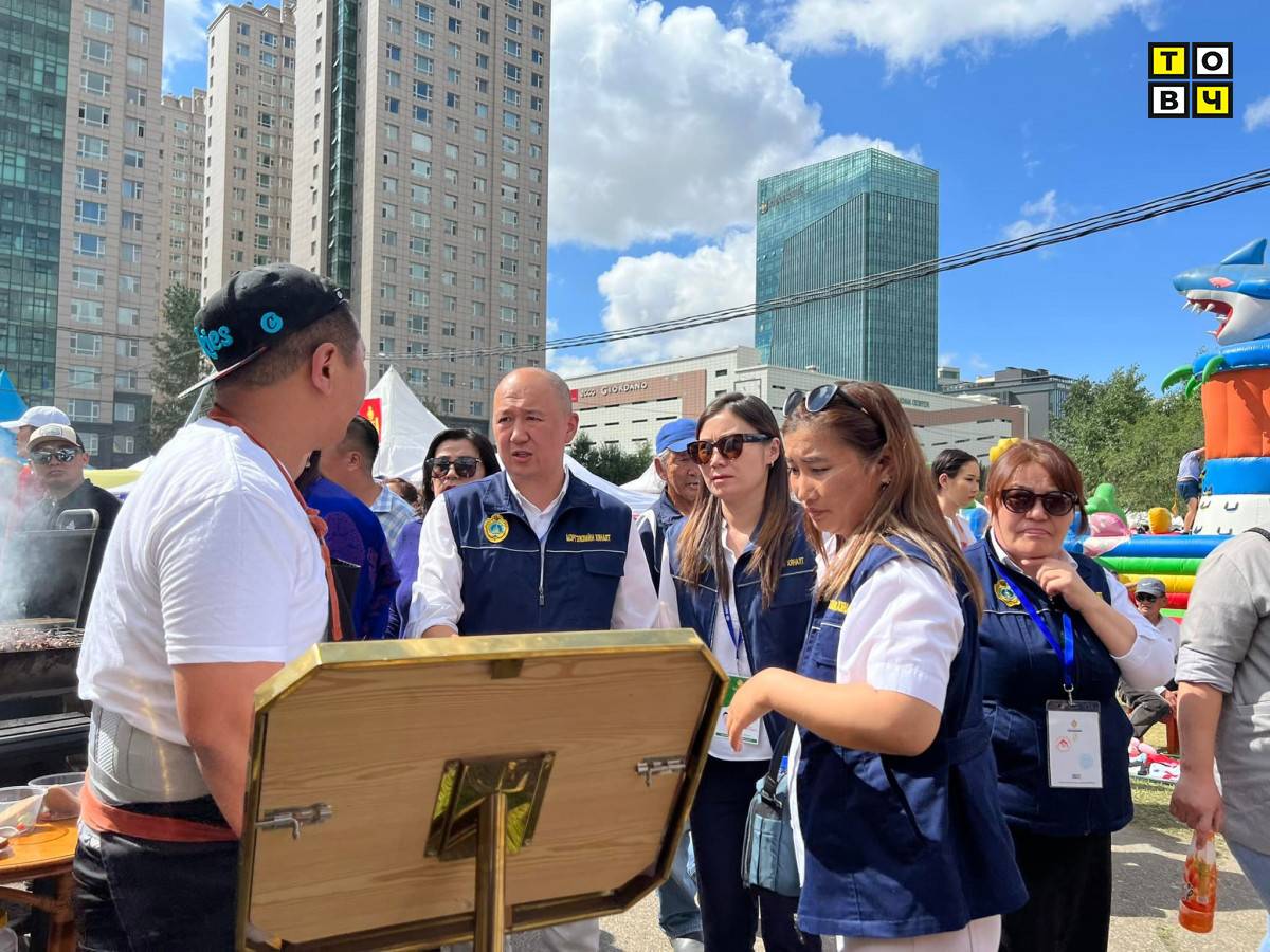 Шалгалтын явцад явуулын 2 лабораторид айраг, сүү, сүүн бүтээгдэхүүн, ундаа, жимснээс дээж авч, шинжилгээнд хамруулж, Төв цэнгэлдэх хүрээлэнгийн нийт 19400 мкв талбайд (13000 гаруй сандал, 23 ариун цэврийн цэгийн 130 гаруй суултуур, орох гарах 18 хаалга, хогийн цэг 1) 0,02%-ын гипохлорид кальци, хлорсептороор халдваргүйтгэл хийхэд хяналт тавьж ажиллаж байна.