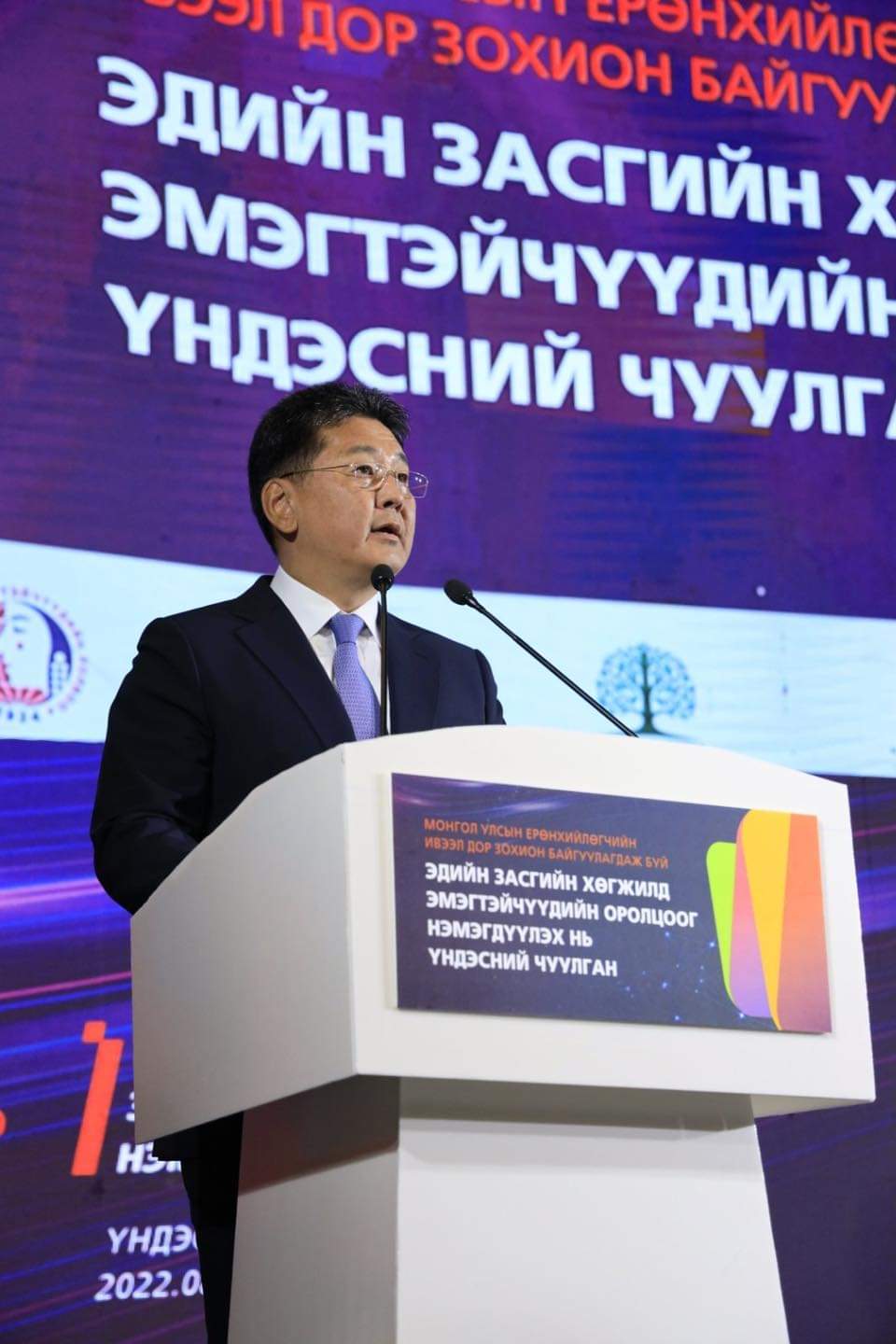 Монгол Улсын Ерөнхийлөгч У.Хүрэлсүхийн ивээл дор зохион байгуулагдаж буй “Эдийн засгийн хөгжилд эмэгтэйчүүдийн оролцоог нэмэгдүүлэх нь” чуулганд Нийслэл, 21 аймаг, иргэний нийгэм, хувийн хэвшил, олон улсын байгууллагын төлөөлөл 800 гаруй хүн оролцож байна.