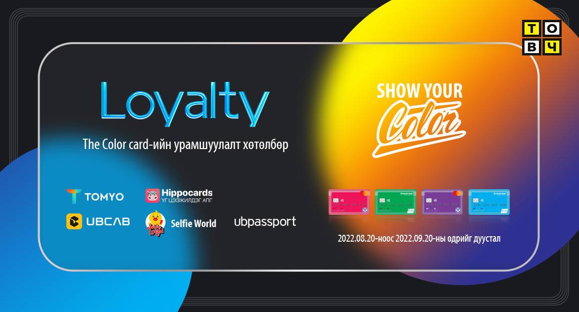 The Color Card-ийн хэрэглэгч хүүхэд, залуус та бүхэн энэ зун дуусахаас өмнө амжиж хүслийн жагсаалтаа биелүүлээд давхар бэлэгтэй урамшуулалдаа хамрагдаарай. “Loyalty” хөтөлбөр нь 2022.08.20-2022.09.20-ны хооронд хэрэгжих ба хэрвээ та энэ хугацаанд өөрийн цуглуулсан оноог ашиглаж амжаагүй бол дараа дараагийн оноотой урамшуулалд ашиглах боломжтой юм. Үүнээс гадна The Color Card-ийн шинэ харилцагч болсон тохиолдолд “Welcome point” 10,000 оноог бэлэглэх болно.