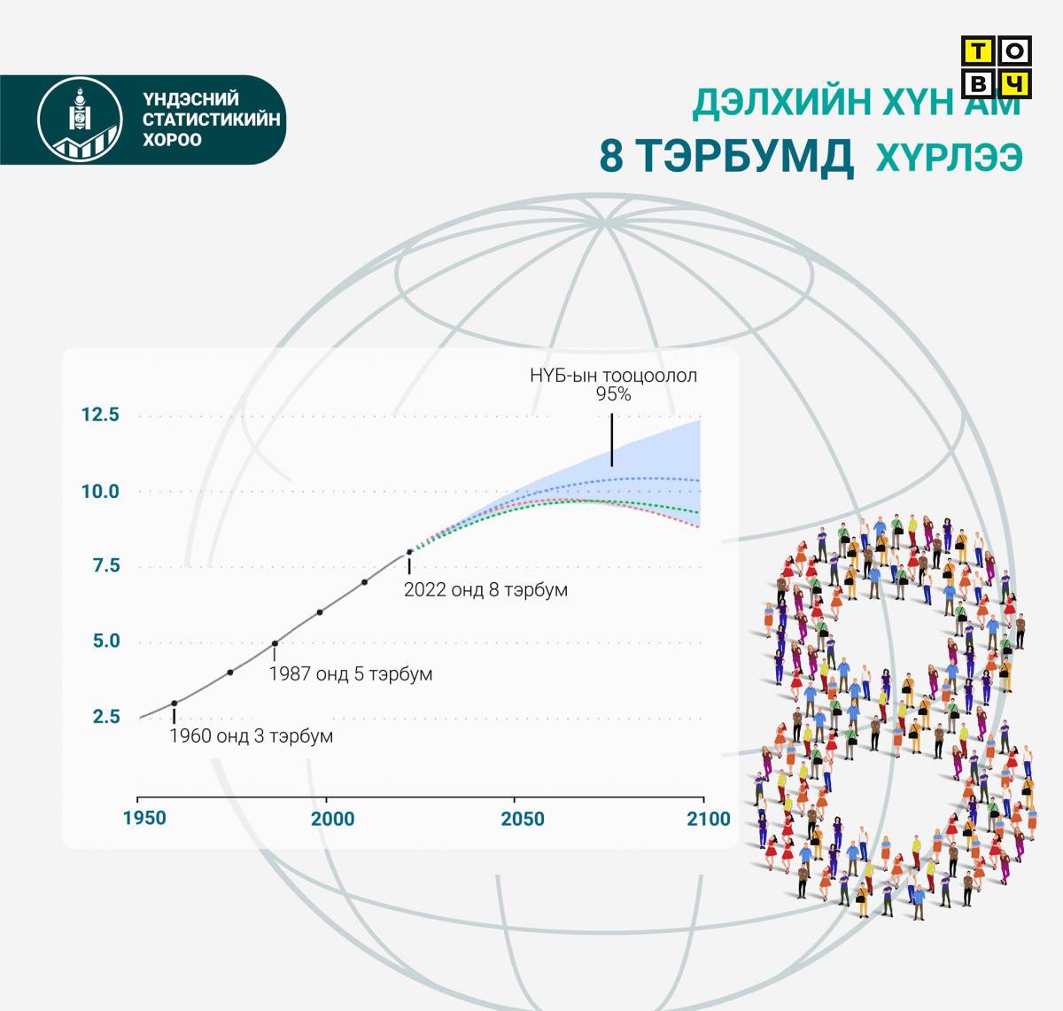 - 2011 онд 7 тэрбумд хүрч байсан бол өнөөдөр буюу 2022 оны 11 дүгээр сарын 15-нд 8 тэрбумд хүрч байна.