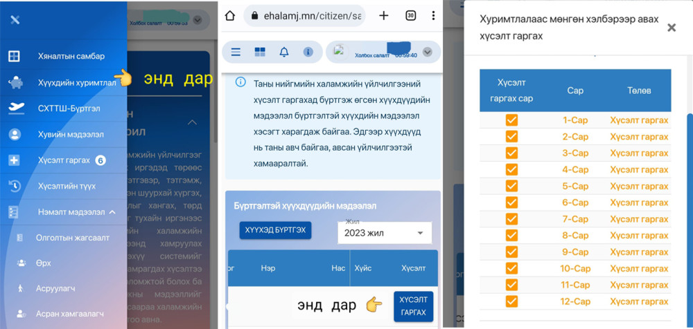 Хүүхдийн мөнгө бэлнээр авах хүсэлтийг өнгөрсөн жилээс эхлэн ehalamj.mn систем болон ebarimt аппликэшнээр дамжуулан явуулдаг болоод буй. Тэгвэл ehalamj.mn системд 2023 онд хүүхдийн мөнгө авах хүсэлтээ илгээх цонх нээгдсэн байна. Тухайлбал хүүхдийн мөнгө бэлнээр авах бол дээрх системд өөрийн бүртгэлээр нэвтэрнэ. Улмаар хүүхдийн хуримтлал цонхон дээр дарж хүсэлтээ гаргана. Хүсэлт гаргахдаа 1-12 сарыг бүгдийг сонгох болон зарим сарыг сонгохгүй орхиж, хүүхдийн мөнгөө хуримтлуулах боломжтой юм. Хэрэв хүсэлтээ илгээгээгүй тохиолдолд хүүхдийн мөнгөө авах боломжгүй бөгөөд автоматаар хуримтлагдахыг сануулж байна.