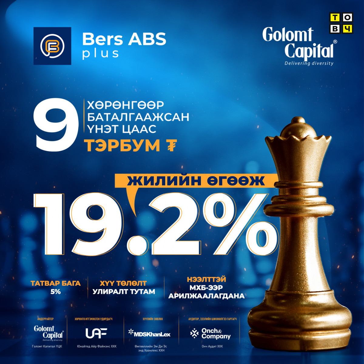 Хөрөнгийн зах зээлд тэргүүлэгч Голомт Капитал ҮЦК нь Бэрс Эй Би Эс Плас ТЗК ХХК-ийн эрсдэл багатай, өндөр өгөөж бүхий “Бэрс-2” ХБҮЦ-ыг хөрөнгө оруулагчдад санал болгож эхэллээ.