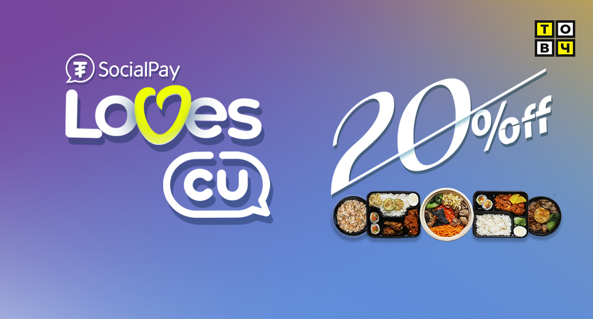 Хэрэглэгчдээ үргэлж хайрладаг SocialPay аппликэйшний ээлжит бэлэг “SocialPay Loves CU” урамшуулалт аянаар үргэлжилж байна. “SocialPay Loves CU” аян нь 2023.05.10-ныг дуустал үргэлжлэх бөгөөд энэ хугацаанд CU дэлгүүрээс савтай хоол худалдан авахдаа SocialPay аппликэйшнээр төлбөрөө төлсөн хэрэглэгч бүрд 20%-ийн хөнгөлөлт олгоно.