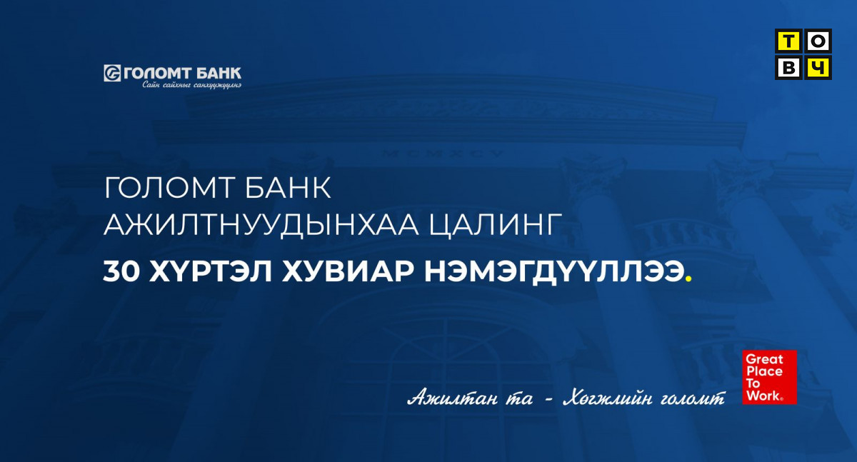 Голомт банк ажилтнуудынхаа цалинг 2023 оны 5-р сарын 1-ний өдрөөс эхлэн 30 хүртэл хувиар нэмэгдүүллээ.