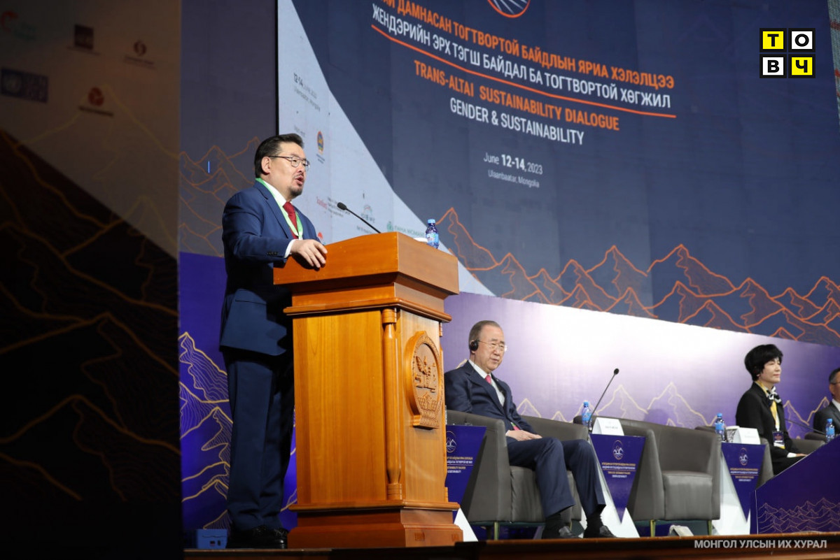 Монгол Улсын Их Хурал, АНУ-ын Стэнфордын их сургууль, Бан Ги Мун сан, БНСУ-ын Эва эмэгтэйчүүдийн их сургуультай хамтран “Алтай дамнасан тогтвортой байдлын яриа хэлэлцээ-жендэрийн эрх тэгш байдал ба тогтвортой хөгжил” чуулга уулзалт /2023.06.12/ өнөөдөр Төрийн ордонд эхэллээ. УИХ-ын дарга Г.Занданшатар чуулга уулзалтыг нээж үг хэллээ.