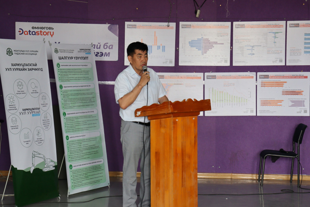 Үүний дараа Олон улсын санхүүгийн корпорацийн Хөгжлийн төлөө ил тод байдал хөтөлбөрийн зохицуулагч Б.Дэлгэрмаа “ Хариуцлагатай уул уурхайн хамгийн эхний шаардлага бол ил тод, нээлттэй байх. Улсын хэмжээнд төдийгүй Өмнөговь аймагт уул уурхайн чиглэлээр үйл ажиллагаа явуулдаг ААН-үүд хэдэн зуун төрлийн мэдээллийг нээлттэй мэдээлдэг гэдэг ч судалгаагаар Өмнөговь аймгийн иргэдийн уул уурхайн нөлөөллийн талаарх мэдлэг, мэдээлэл төдийлөн сайн биш байна. Өөрөөр хэлбэл компаниуд асар их мэдээллээ ил болгоод байгаа хэдий ч иргэд энэ талаар мэдээлэлгүй байна. Энэ нь компаниудын гаргаж байгаа мэдээлэл иргэдийн мэдээлэл авах хэрэгцээг хангахгүй байна гэсэн үг. Тиймээс цаашид компаниуд мэдээллээ иргэдэдээ ойлгомжтойгоор хүргэх асуудал чухал байна” гэлээ.