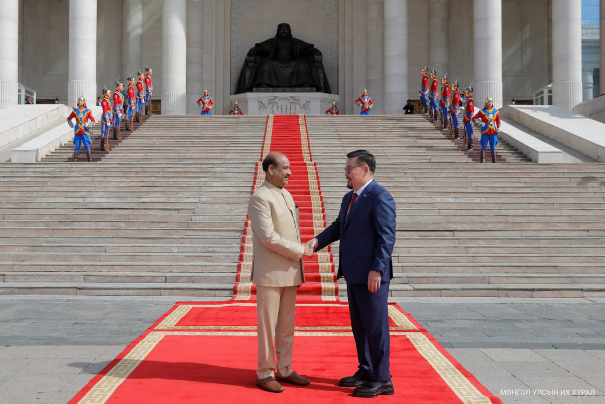 Улсын Их Хурлын дарга Г.Занданшатар өнөөдөр (2023.07.07) Монгол Улсад албан ёсны айлчлал хийж буй Бүгд Найрамдах Энэтхэг Улсын Парламентын доод танхим Лок Сабха-гийн дарга Ом Бирла-г Жанжин Д.Сүхбаатарын талбайд угтан мэндчиллээ.