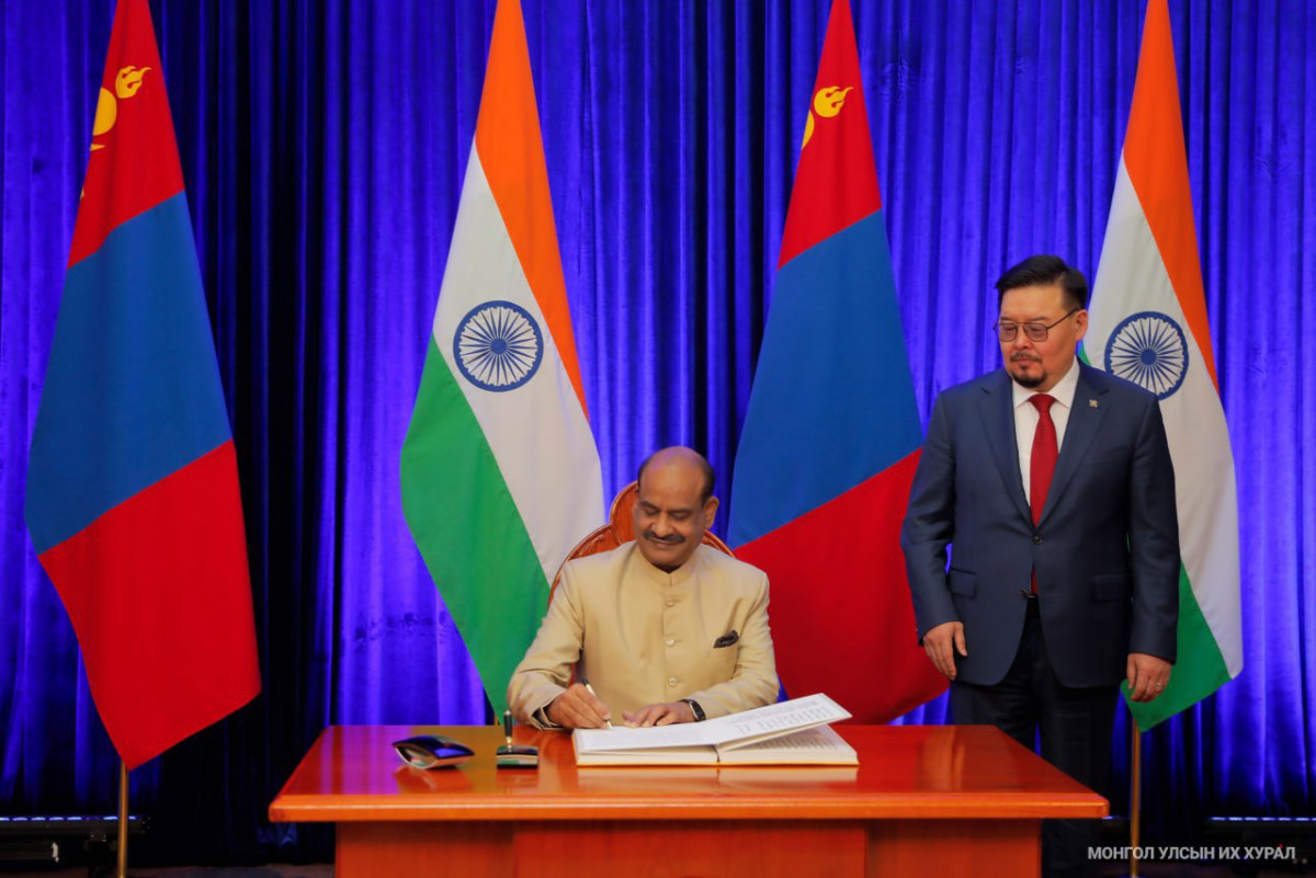 Улсын Их Хурлын дарга хүндэт зочны хамт Их Эзэн Чингис хааны хөшөөнд хүндэтгэл үзүүлсний дараа Төрийн ордны Ёслол хүндэтгэлийн өргөөний Баганат танхимд саатан, Эрхэмсэг ноён Ом Бирла хүндэт зочны дэвтэрт сэтгэгдлээ үлдээн, гарын үсэг зурав.
