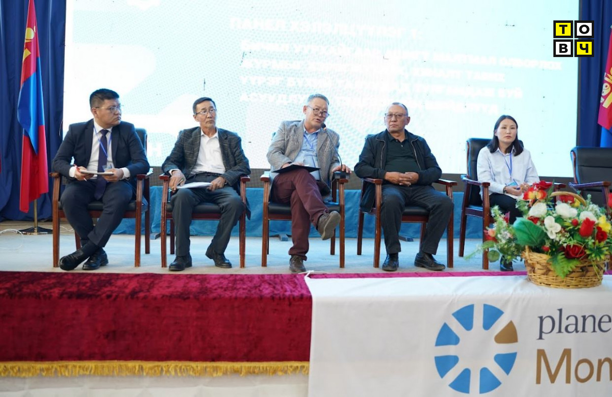 Зөвлөгөөний панел хэлэлцүүлэг үндсэн хоёр бүлэг сэдвийн хүрээнд өрнөлөө. Эхний хэлэлцүүлэг “Бичил уурхайгаар ашигт малтмал олборлох журмыг хэрэгжүүлэх, хяналт тавих үүрэг бүхий талуудад тулгамдаж буй асуудлууд, тэдгээрийн шийдлүүд” сэдвийн дор боллоо. Хэлэлцүүлгийн панелистаар planetGOLD Монгол төслийн Менежер Б.Алтанбагана, Ашигт малтмал, газрын тосны газрын Баруун бүсийн төлөөлөгчийн газрын дарга П.Эрдэнэчулуун, МБУНДХ-ны Тэргүүн, Удирдах зөвлөлийн дарга Н.Нарантөгс, Баян- Өлгий аймгийн Толбо сумын Засаг даргын Тамгын газрын Байгаль орчны хяналтын Улсын байцаагч Х.Бахытхан, Ховд аймгийн Байгаль орчны газрын мэргэжилтэн Б.Ариундолгор, Ховд аймгийн Экологийн цагдаагийн албаны Эрүүгийн мөрдөгч, Цагдаагийн ахлах Б.Сүхцэрэн нар оролцов. Панелистууд Бичил уурхайгаар ашигт малтмал олборлох журам хэрэгжиж эхэлснээр салбарын нөхцөл байдал жигдэрч байгааг онцлон тэмдэглэж, Ашигт малтмалын тухай хуулийн шинэчилсэн найруулгад бичил уурхайн салбарын зохицуулалтыг зайлшгүй тусгах хэрэгтэй гэдгийг тус тусын салбарын тоон мэдээлэлд тулгуурлан онцлон хэлж байлаа.
