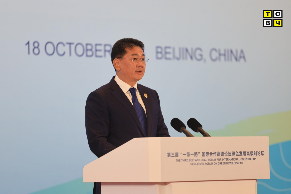БНХАУ-ын Бээжин хотноо “Бүс ба Зам” олон улсын хамтын ажиллагааны дээд түвшний гурав дахь удаагийн чуулга уулзалтад оролцож буй Монгол Улсын Ерөнхийлөгч Ухнаагийн Хүрэлсүх өнөөдөр чуулга уулзалтын “Ногоон Торгоны замыг хамтдаа бүтээж, хүн ба байгалийн эв зохистой оршихуйг урагшлуулъя” хэлэлцүүлэгт оролцож, үг хэллээ.