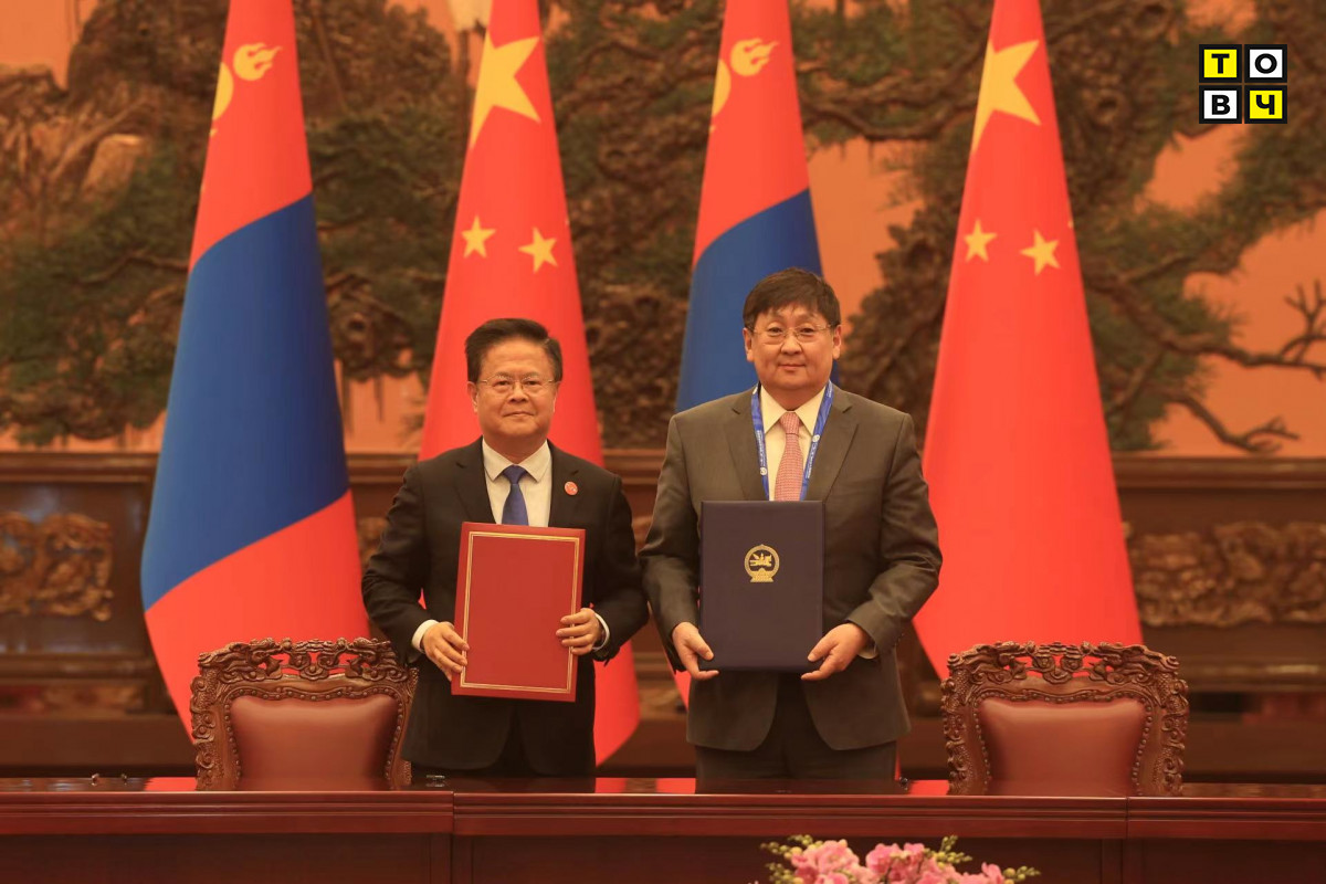 Монгол Улсын Ерөнхийлөгч Ухнаагийн Хүрэлсүх Бүгд Найрамдах Хятад Ард Улсад зохион байгуулагдаж буй “Бүс ба зам” олон улсын хамтын ажиллагааны дээд түвшний чуулга уулзалтад оролцох үеэр 2023 оны 10 дугаар сарын 19-ний өдөр хоёр улсын Төрийн тэргүүн нарыг байлцуулан БНХАУ-ын Ардын Их хурлын ордонд дараах баримт бичигт гарын үсэг зурав.