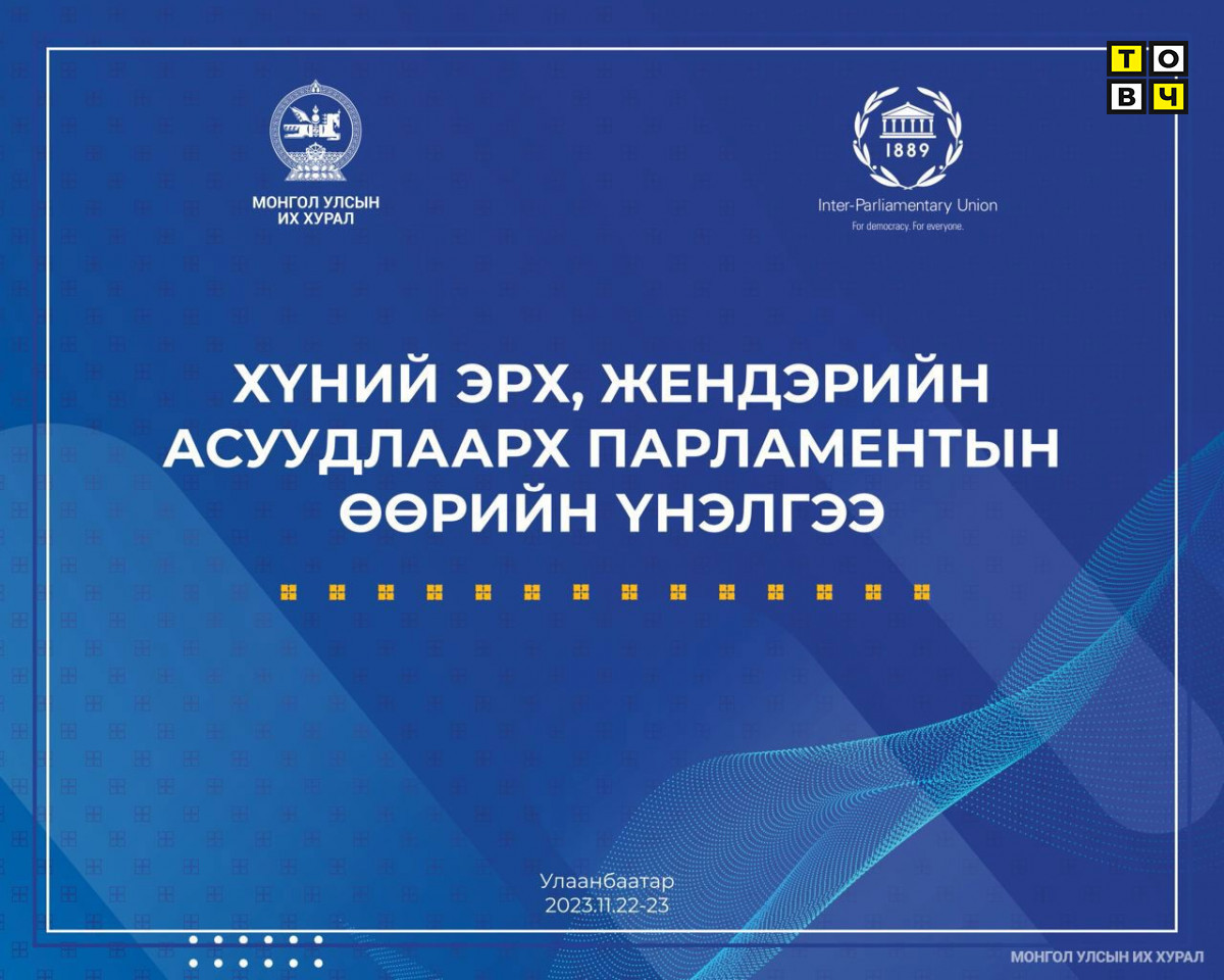 Монгол Улсын Их Хурал нь Олон Улсын Парламентын Холбооноос (ОУПХ) боловсруулсан аргачлалын дагуу хүний эрх болон жендэрийн асуудлаар хоёр төрлийн үнэлгээ хийх үйл ажиллагааг 2023 оны 11 дүгээр сарын 22, 23-ны өдрүүдэд Төрийн ордонд зохион байгуулна. Өөрийн үнэлгээ нь ОУПХ-ны “Парламент ба Хүний эрх”, “Парламентын жендэрийн мэдрэмжтэй байдал” өөрийн үнэлгээний аргачлалд үндэслэн тодорхойлсон асуултуудыг хамрах бөгөөд нэгдсэн болон салбар хэлэлцүүлэг хэлбэрээр явагдана.