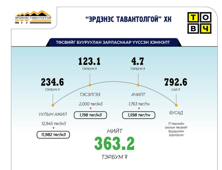 Онцгой дэглэмийн хугацаанд “Эрдэнэс Тавантолгой” ХК нүүрсээ хил нөхцөлөөр биржээр борлуулж 278.6 сая ам.долларын нэмэлт орлого олсон. Санхүүгийн сахилга батыг сайжруулан өр төлбөрийг 2.0 их наяд төгрөгөөр бууруулж 363.2 тэрбум төгрөгийн хэмнэлт хийлээ. Ил тод, нээлттэй байдлыг хангаж компанийн борлуулалт, нүүрс тээвэр, худалдан авалт, С зөвшөөрөл гэх мэт бүхий л мэдээллийг www.ett.mn цахим хуудсанд нээлттэй байршуулж, баяжуулах үйлдвэр, усан хангамж, цахилгаан хангамжийн төслүүдийг эрчимжүүлэн, ажилчдын нийгмийн асуудлыг үе шаттайгаар шийдвэрлэн УИХ-ын 28-р тогтоолын хэрэгжилтийг бүрэн ханган ажиллалаа.