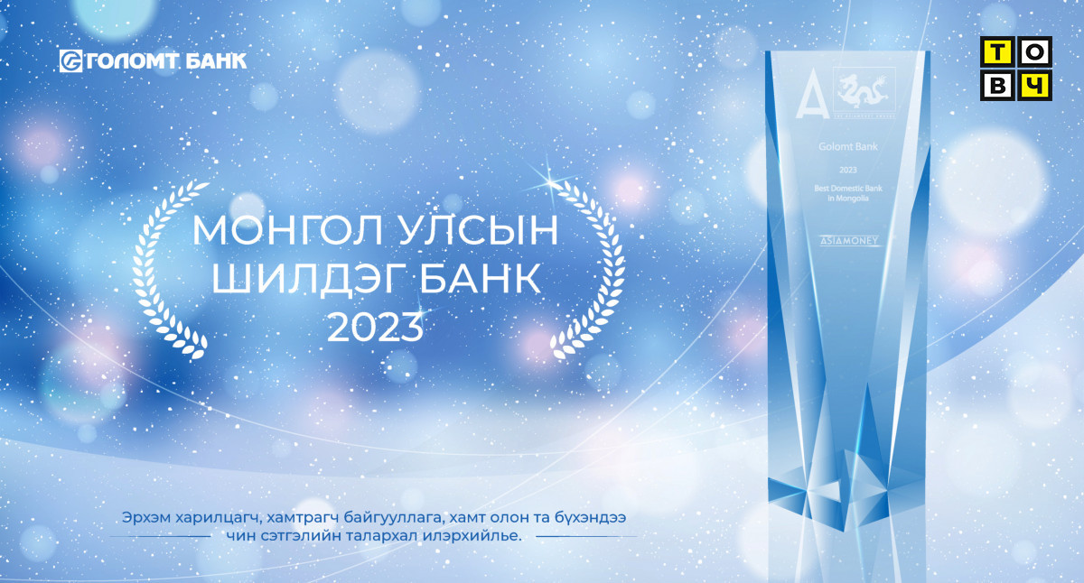 Ази, Номхон далайн бүсийн орнуудын банк санхүүгийн салбарын шилдгүүдийг тодруулан зарладаг Asiamoney сэтгүүлээс Монгол Улсын нийгэм, эдийн засагт оруулсан хувь нэмэр, тогтвортой үйл ажиллагаа, дижитал шилжилт, шинэлэг хүртээмжтэй бүтээгдэхүүн үйлчилгээ, ногоон зээлийн төрөлжилт болон санхүүгийн хүчирхэг үзүүлэлтүүдийг үнэлэн Голомт банкийг 2023 оны “Монгол Улсын Шилдэг Банк”-аар өргөмжиллөө.