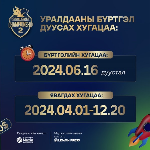 Бүртгүүлэх: “GОLOMT CAPITAL CHAMPIONSHIP-2”гадаад арилжааны уралдаанд оролцохыг хүсвэл энд дарна уу.