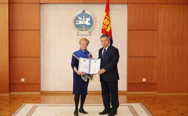 Монгол Улсын Ерөнхийлөгч Х.Баттулга өнөөдөр зарлиг гаргаж, хоёр улс хоорондын найрамдалт харилцаа, хамтын ажиллагааг өргөжүүлэн хөгжүүлэхэд оруулсан хувь нэмрийг нь үнэлж Америкийн Нэгдсэн улсын иргэн Мирна Анн Адкинсийг Төрийн дээд шагнал Алтан гадас одонгоор шагналаа.